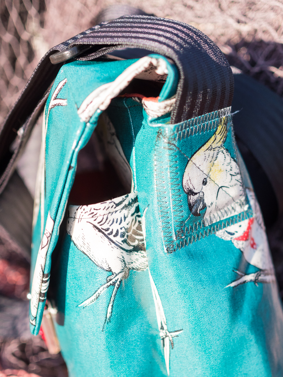 Für die Blöcke habe ich ausschließlich Stoffe von Tula Pink verwendet. Entsprechend bunt ist er geworden. Ich habe es geschafft, auf alle Blöcke Tiere unterzubringen, was gar nicht so einfach war. Oft musste ich jeden Fitzel einzeln zuschneiden, damit alles passt. Aber ich finde, die Mühe hat sich gelohnt.